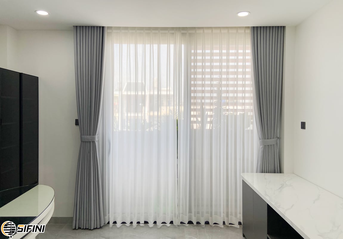 Sifini luôn hướng đến tư vấn cho khách hàng những không gian như phòng khách thì nên đầu tư một bộ rèm 2 lớp làm full chiều ngang chiều cao sẽ rất đẹp và sang trọng.