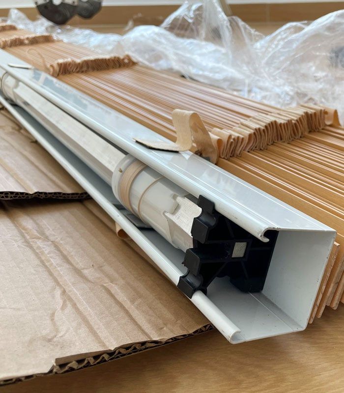 Trục cuốn: Là phần trục chính để rèm có thể cuốn lên hoặc hạ xuống. Thường làm bằng nhôm hoặc thép không gỉ để đảm bảo độ bền và chịu lực tốt.