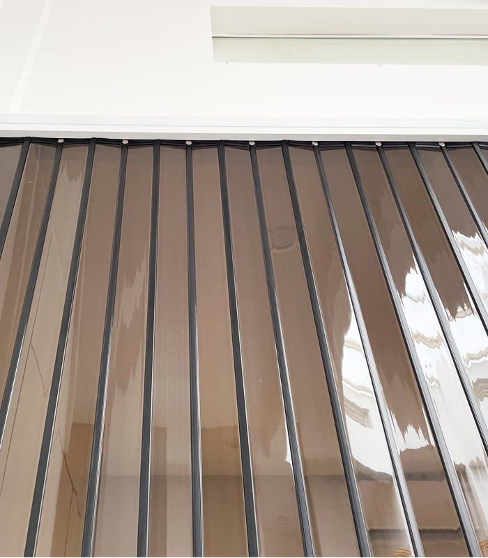 - Chất liệu lá xếp: nhựa trong, nhôm nguyên tấm, nhôm lưới