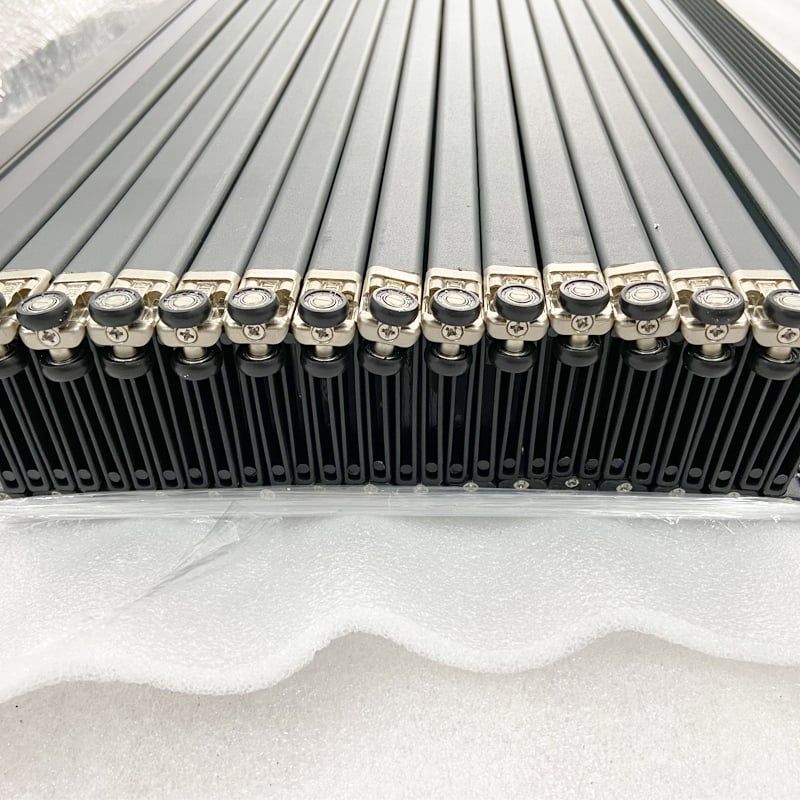 - Chất liệu lá xếp: nhựa trong, nhôm nguyên tấm, nhôm lưới