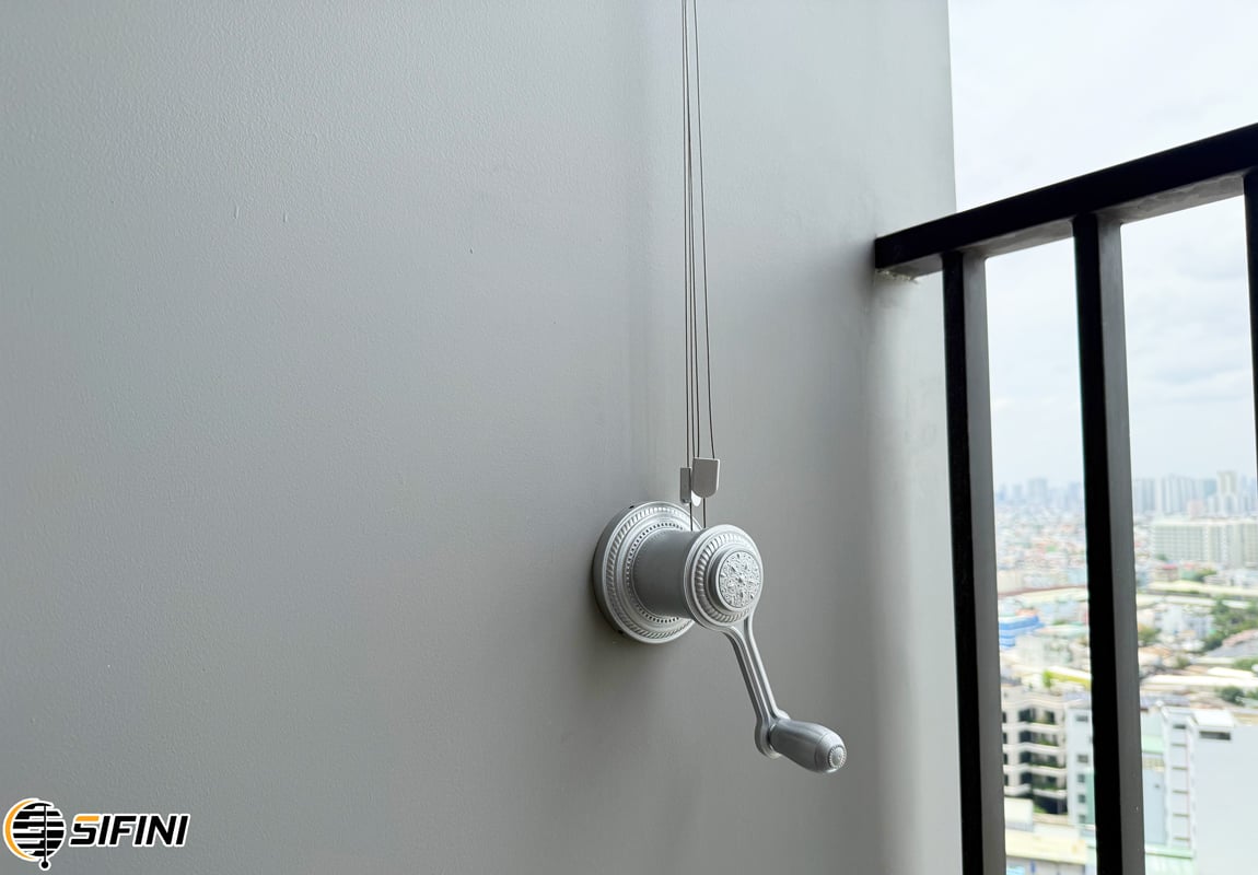 Giàn phơi tay quay là giải pháp phơi đồ tiện lợi với hệ thống nâng – hạ bằng tay quay nhẹ nhàng. Thanh phơi inox/nhôm bền chắc, chịu lực tốt, phơi được nhiều quần áo gọn gàng, phù hợp ban công, chung cư và nhà phố.