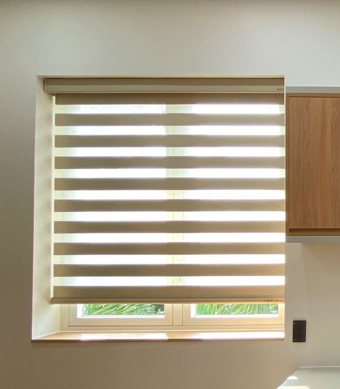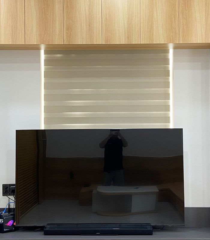 Rèm cầu vồng tự động với thiết kế hai lớp vải hiện đại, tích hợp motor thông minh giúp điều chỉnh ánh sáng linh hoạt, vận hành êm ái và mang lại không gian sang trọng, tiện nghi.